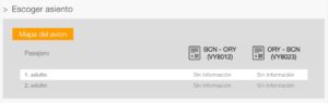 - Nou mapa de sel·lecció de seients. Trobem aquesta opció a la mateixa pantalla de reserva. Al clicar a “Mapa del avión” apareix una nova finestra on podem seleccionar un seient per a cada passatger.