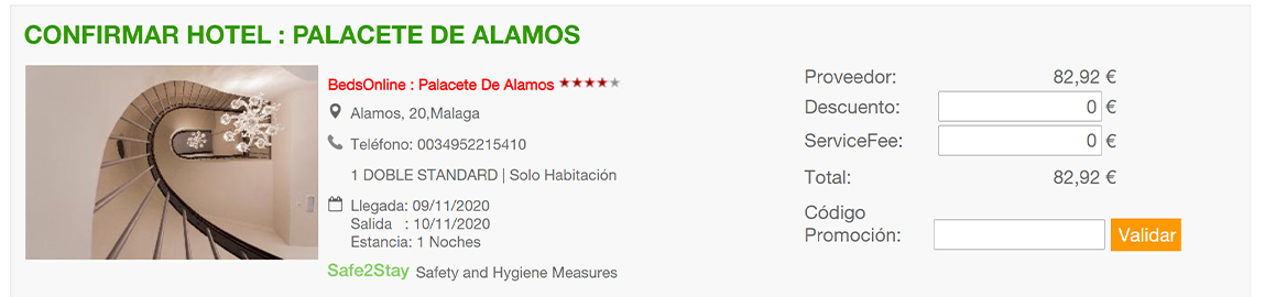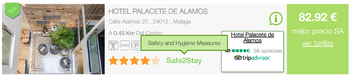 Identifica l’etiqueta Safe2Stay a la fitxa de l’hotel i a la pantalla de reserva: