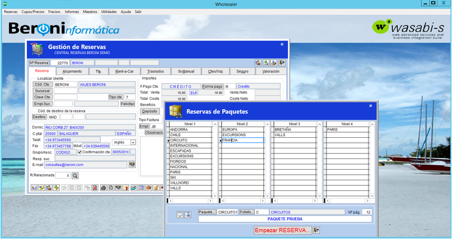 Gestiona toda la actividad de la agencia de viajes mayorista o de tour operación: contratación y parametrización del producto, cupos y precios, suplementos/descuento y early booking.