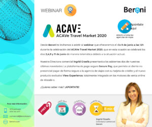 En Beroni participamos un año más en el Travel Market organizado por ACAVe y presentaremos a los asistentes dos de nuestras últimas novedades: La plataforma de pago seguro Secure Pay y el nuevo producto exclusivo View Experience, totalmente integrado en los motores de venta online de Wasabi-s.