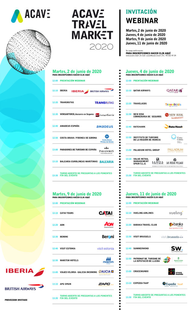 La Asociación Corporativa de Agencias de Viajes Especializadas, celebrará los próximos 2,4,9 y 11 de junio una serie de webinars donde los asistentes podrán conocer de primera mano las novedades que tienen preparadas los proveedores del sector y cómo estos ven el panorama turístico después de la crisis ocasionada por el Covid-19.